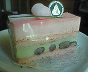 甘さ控えめで、和風なカンジのケーキ。桜の風味がしました。